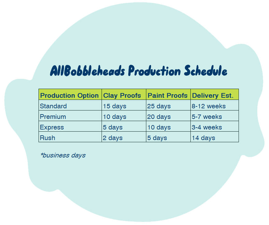 Prior to customizing your bobblehead, please click through all of the customization options to be sure you have all of the necessary information to submit your order.